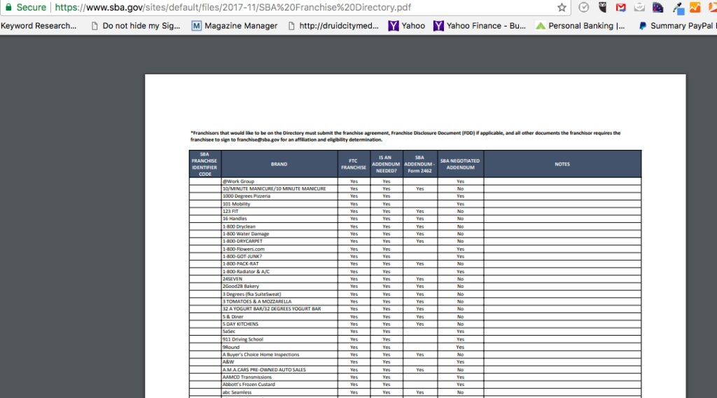 Remember registering a “Franchise” with the SBA is mandatory…at least it is if one plans to use SBA financing.